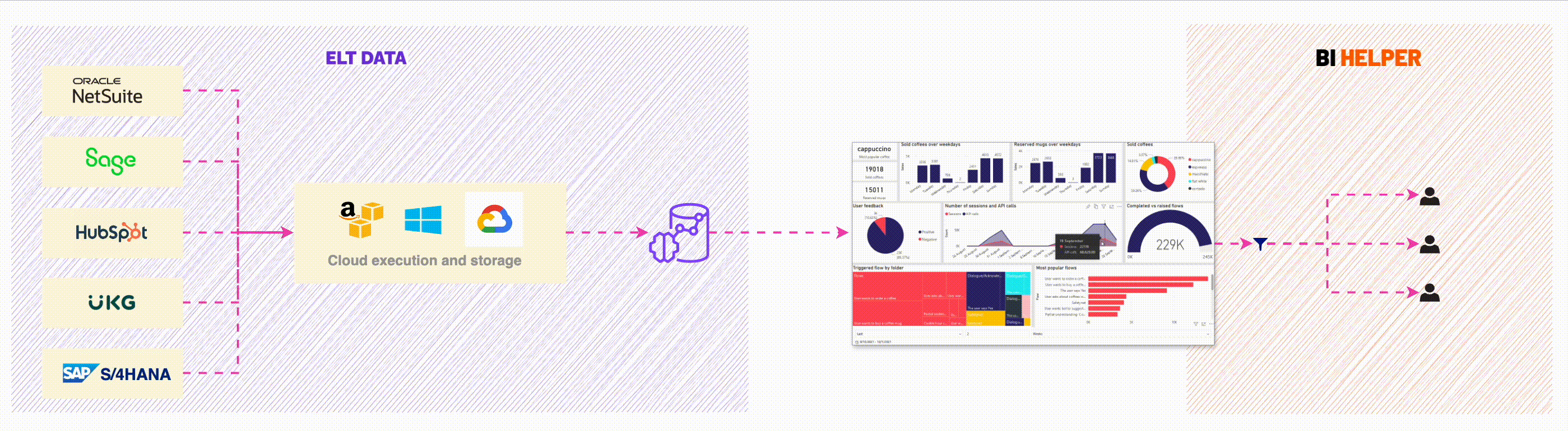 BI Helper delivers actionable business intelligence and insights to users in a timely and cost-effective way, enabling them to drive superior business outcomes.